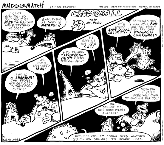 ![]() Spring '05 Articles: Terri Schiavo & Euthanasia God & School The Thought Police The Muddlemarch: 1 The Muddlemarch: 2 Ward Churchill's Sins TV Journalism Quickies